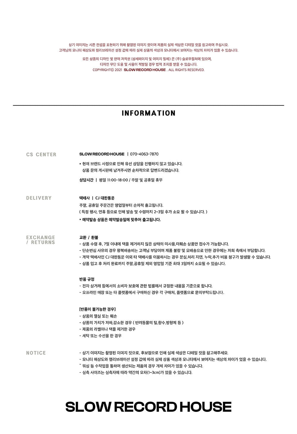 교환 및 반품 안내