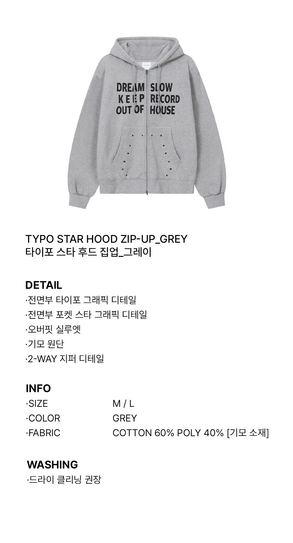 슬로우 레코드 하우스 타이포 스타 후드 집업 그레이