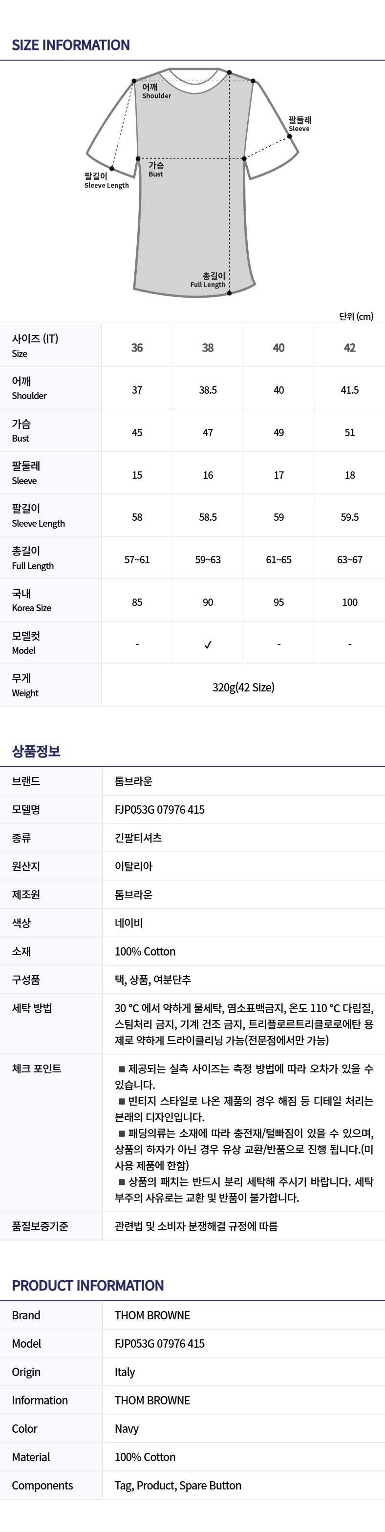 [15% 쿠폰] (W) 톰브라운 카라 롱 슬리브 티셔츠 네이비