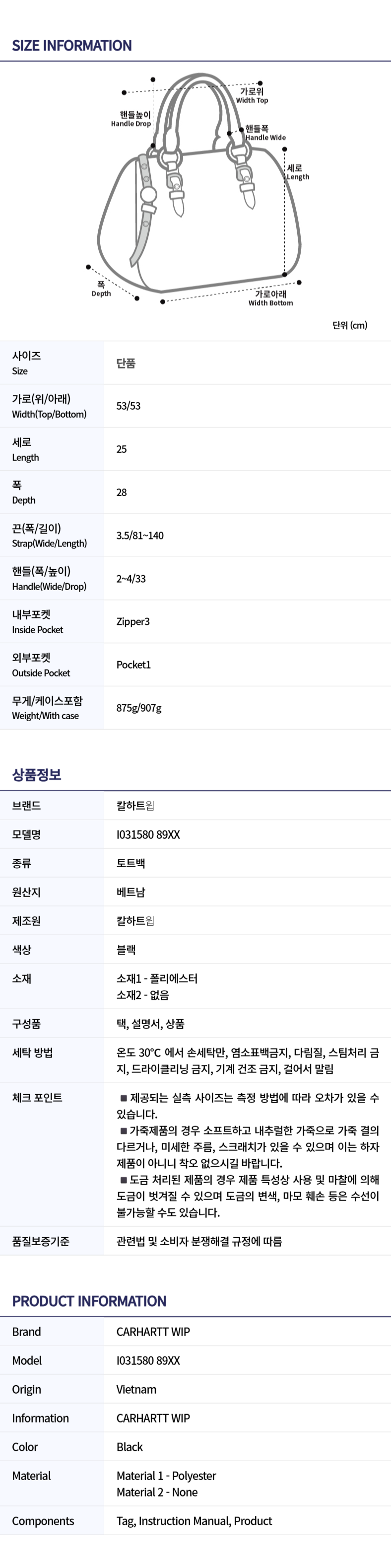 [15% 쿠폰] 칼하트 WIP 잭 더플백 블랙