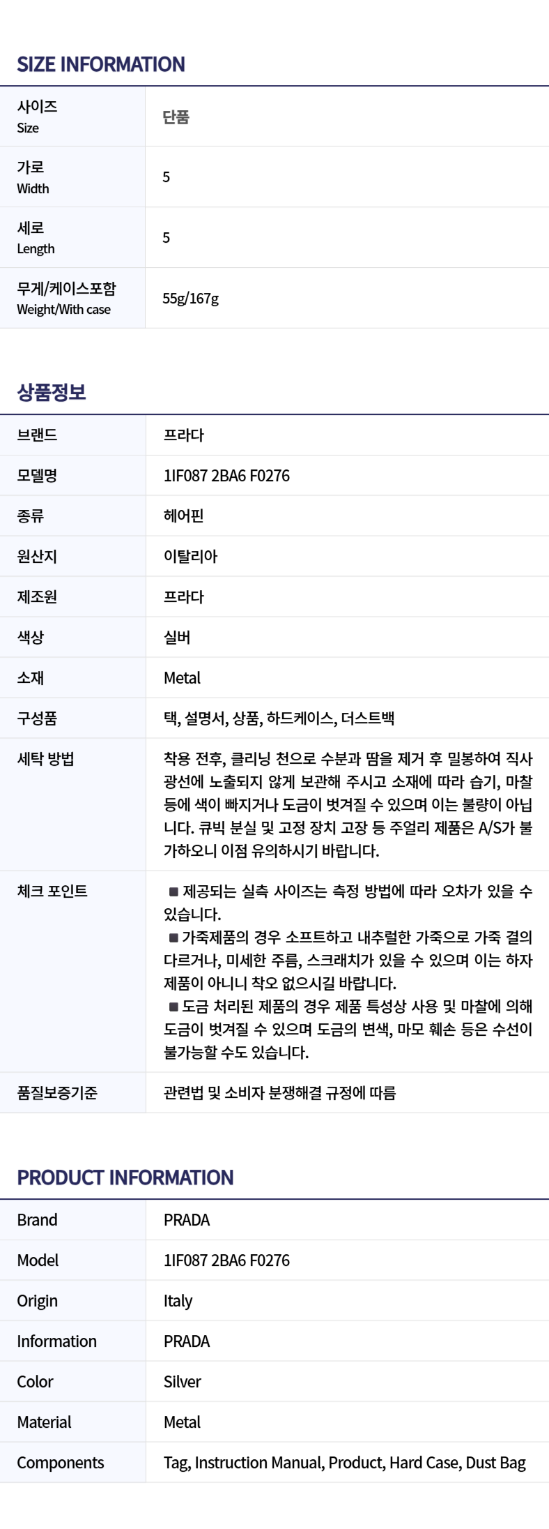 [15% 쿠폰] (W) Prada Metal Hair Clip Steel Gray