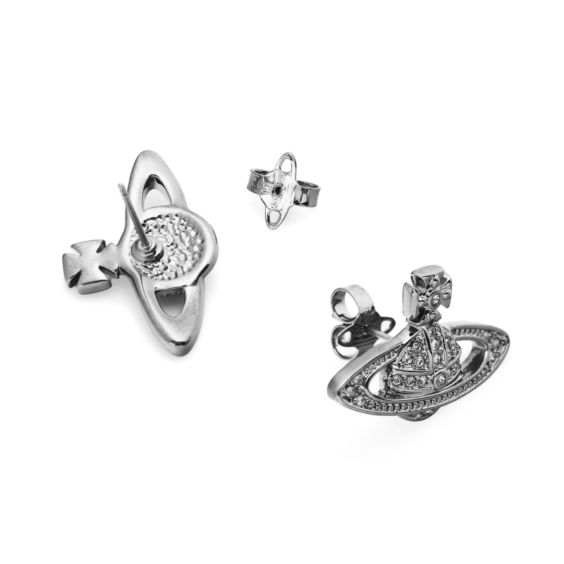 [15% 쿠폰] (W) Vivienne Westwood Mini Bas Relief Earrings Ruthenium Black Diamond