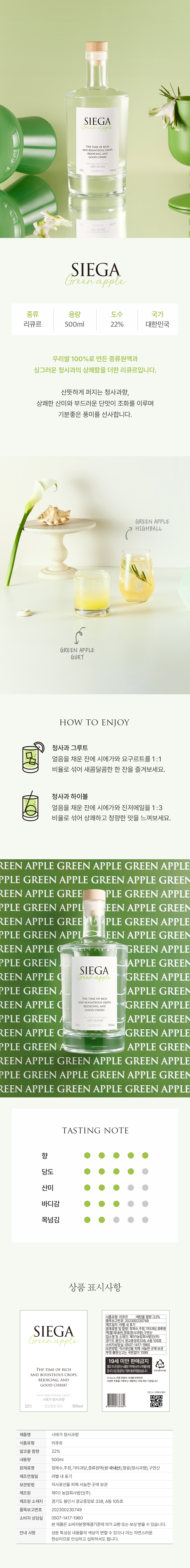 시에가 리큐르 22도 500ml 청사과향