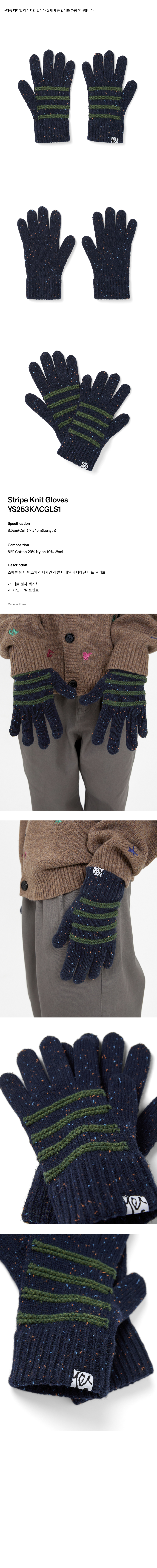 예스아이씨 스트라이프 니트 장갑 네이비