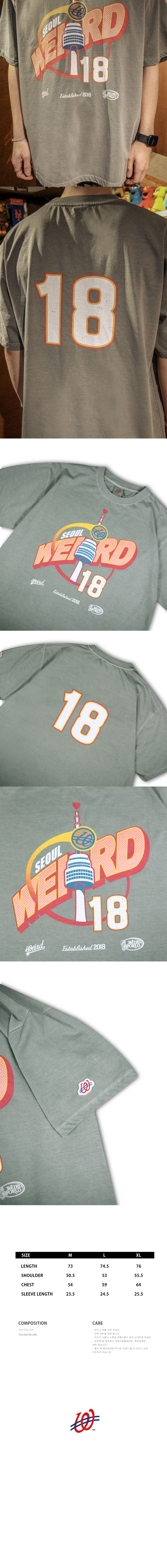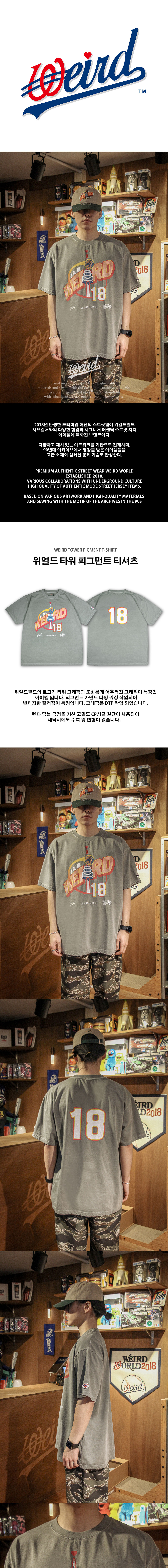 위얼드월드 위얼드 타워 피그먼트 티셔츠 - 라이트카키