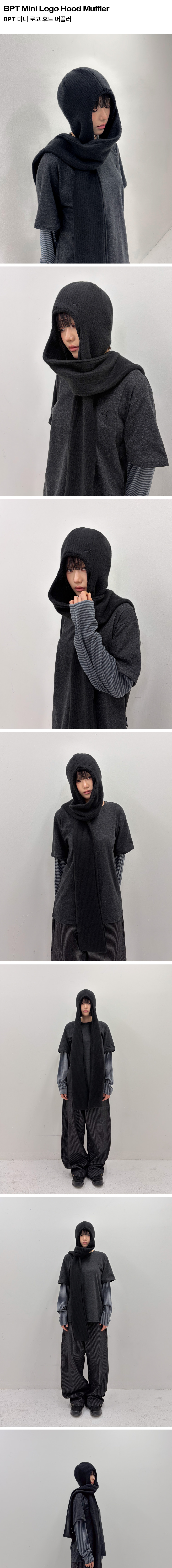 비피투디스오더 미니 로고 후드 머플러 블랙