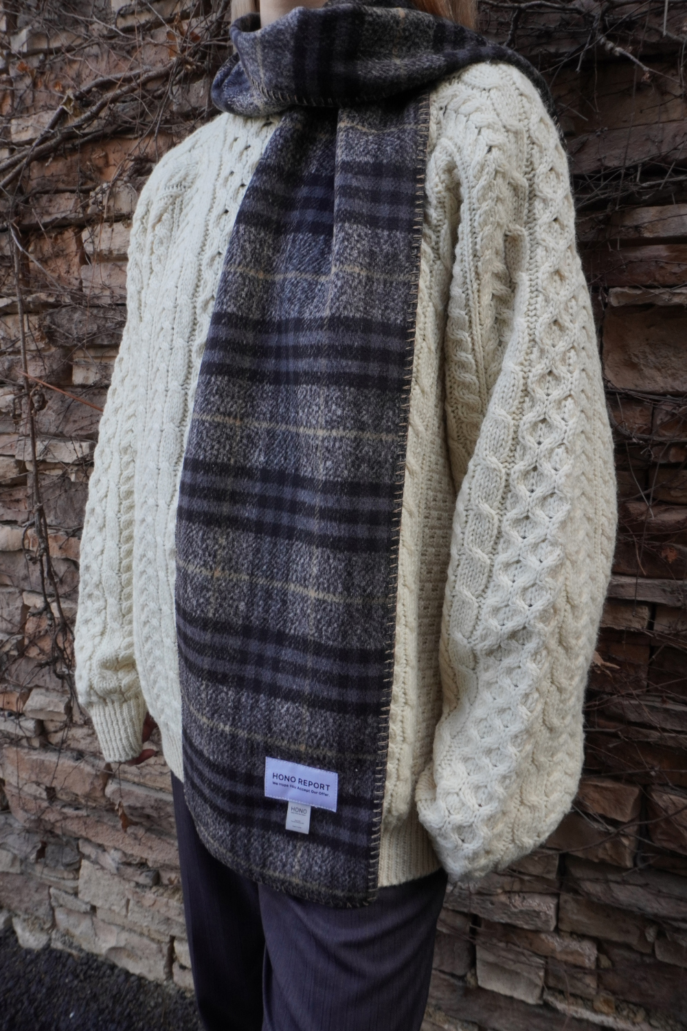 Hono Report Blanket Muffler Gray Check