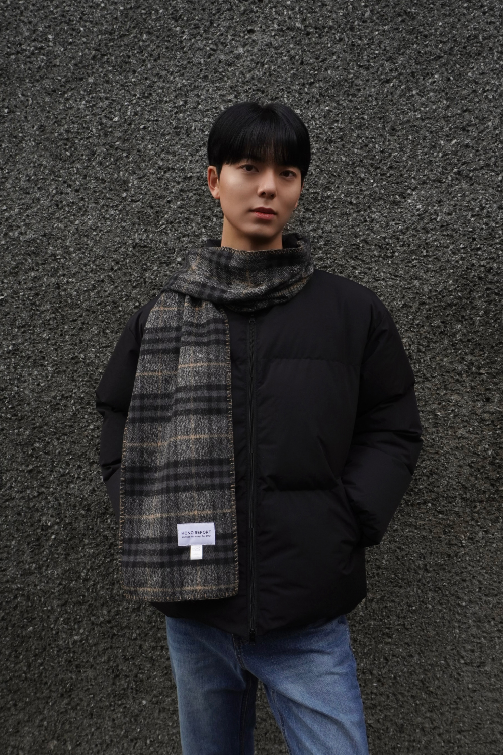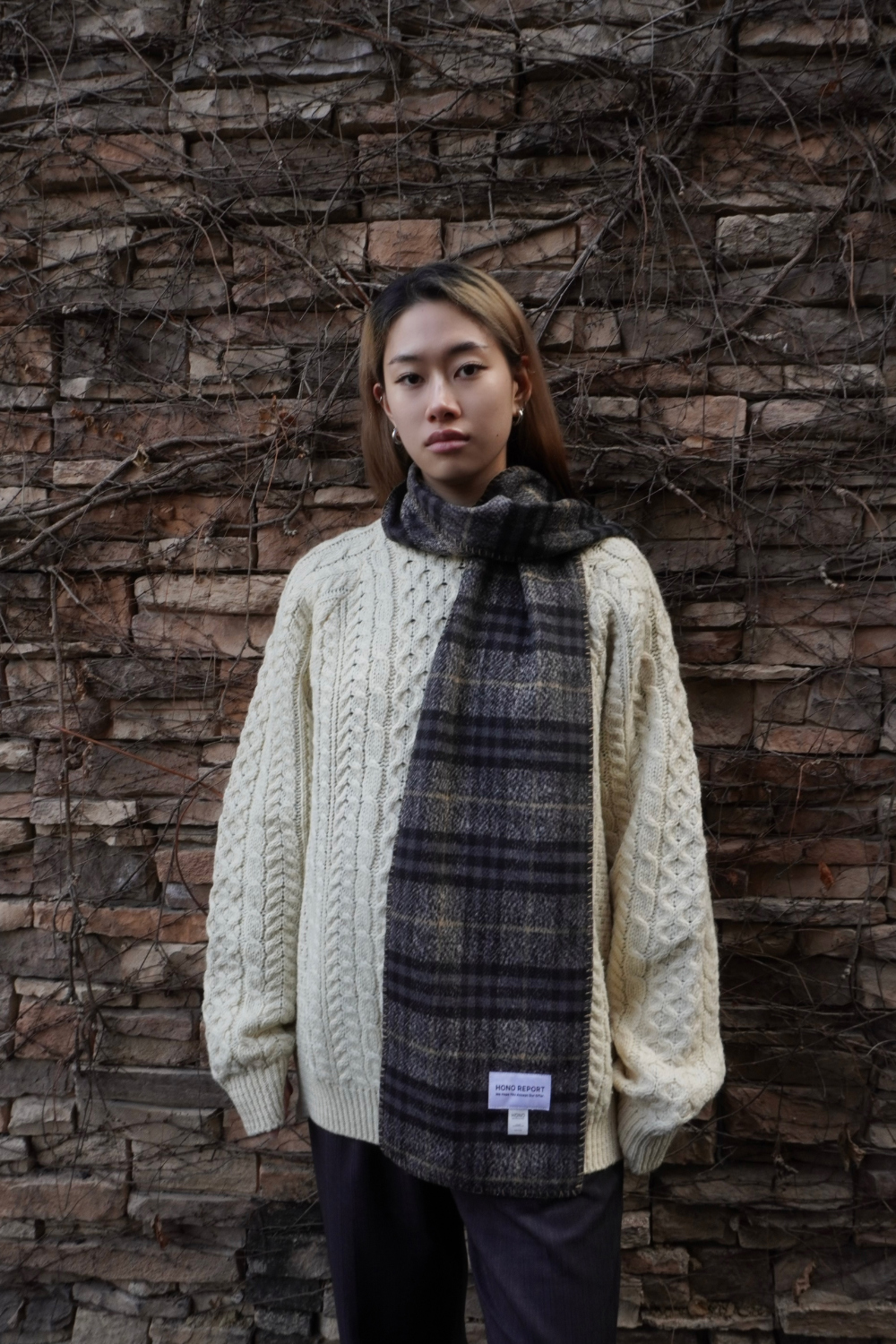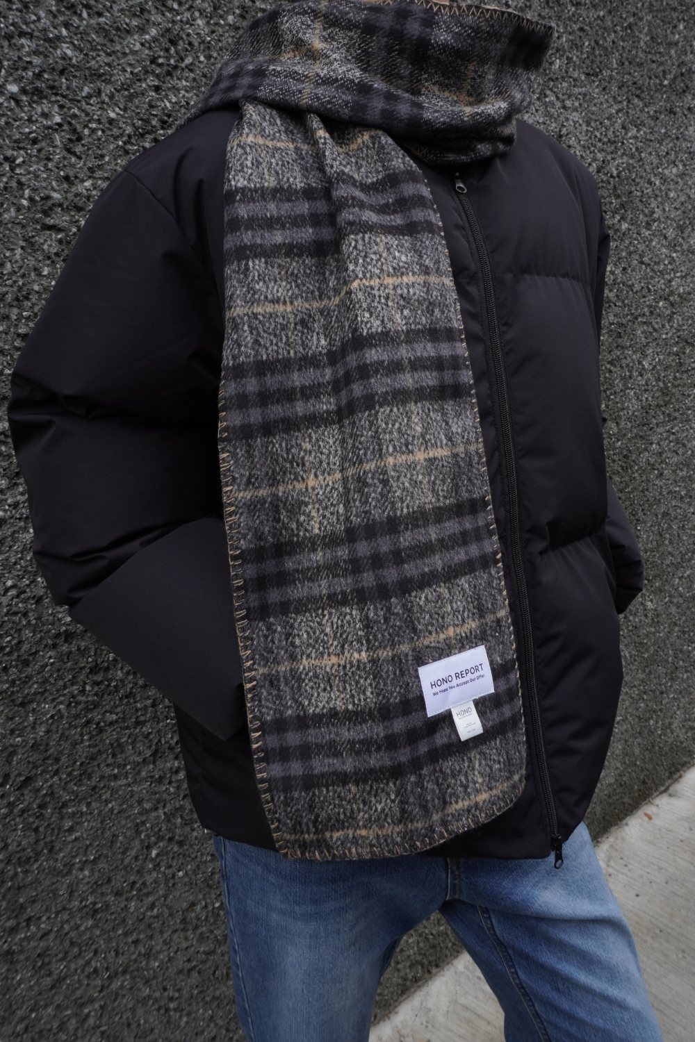 호노 리포트 블랭킷 머플러 그레이 체크