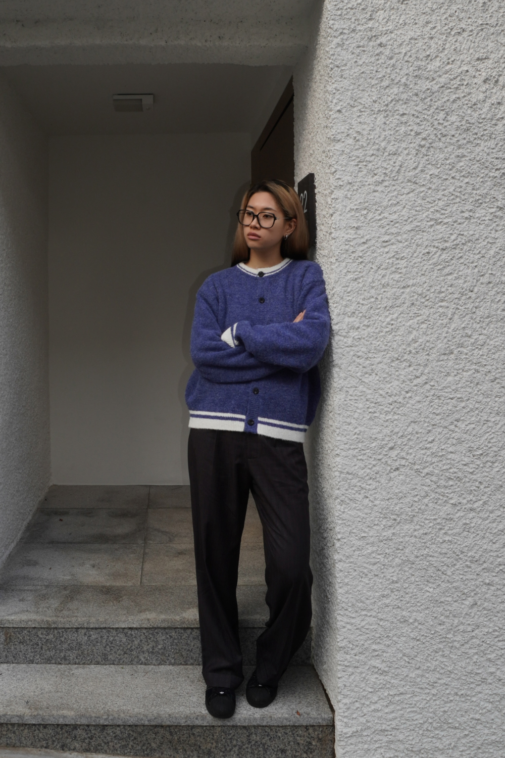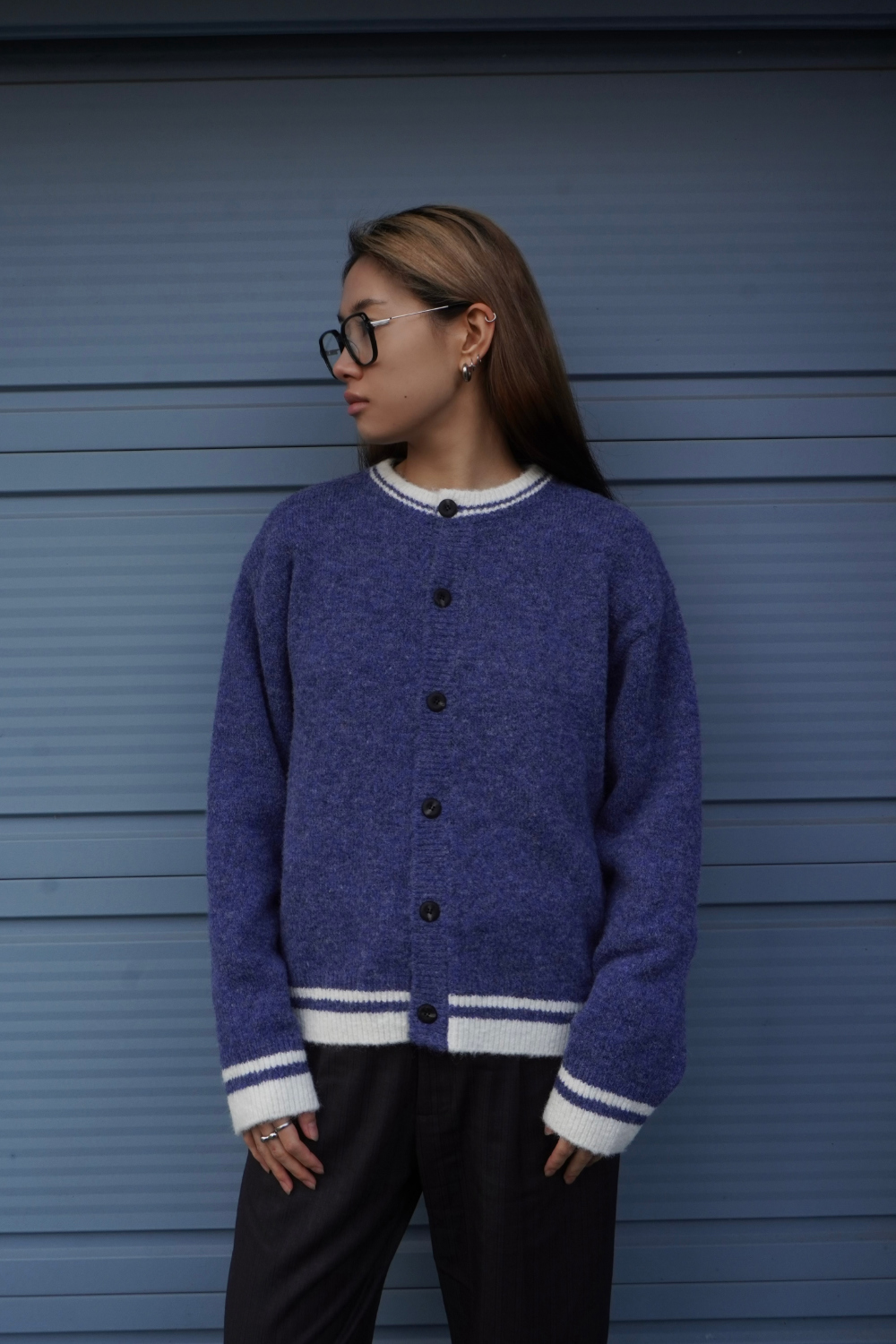 [Product Info] - 넥라인, 밑단, 소매 부분 배색 - 헤어리한 텍스처 [Material] - 리사이클 폴리 59% / 나일론 21% / 폴리 11% / 울 8% / 스판 1% [Washing Tip] - 드라이클리닝 / 건조기 사용 X [Size] 1 Size - 총장 62 / 어깨 52 / 가슴 61 / 소매 57 cm 2 Size - 총장 65 / 어깨 54 / 가슴 63 / 소매 58 cm [Model] Man : 178cm 64kg (2size Fitting) Woman : 175cm 60kg (1size Fitting)
