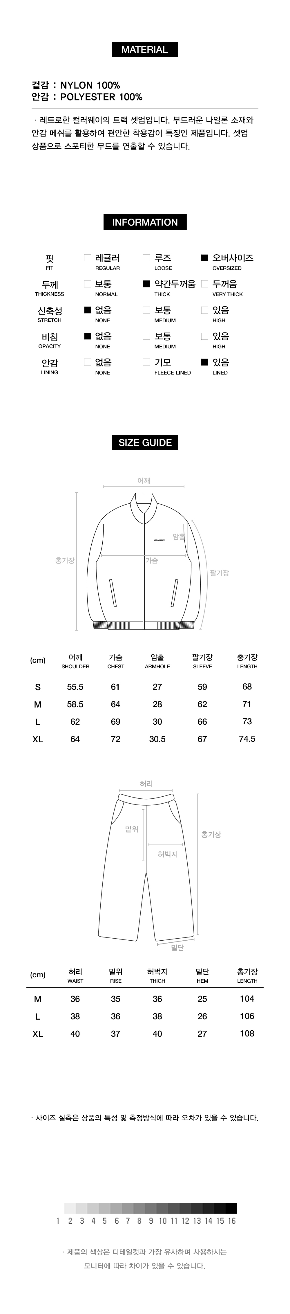 레트로한 컬러웨이의 트랙 셋업입니다. 부드러운 나일론 소재와 안감 메쉬를 활용하여 편안한 착용감이 특징인 제품입니다. 셋업 상품으로 스포티한 무드를 연출할 수 있습니다.