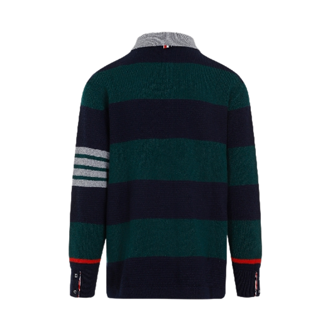 Thom Browne Rugby Stripe Merino 4-Bar Long Sleeve Polo Dark Green