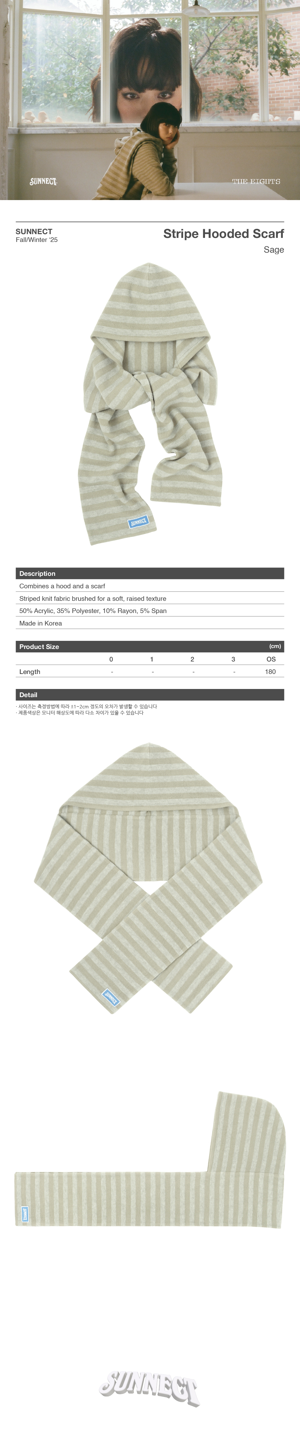 써넥트 스트라이프 후디드 스카프 세이지