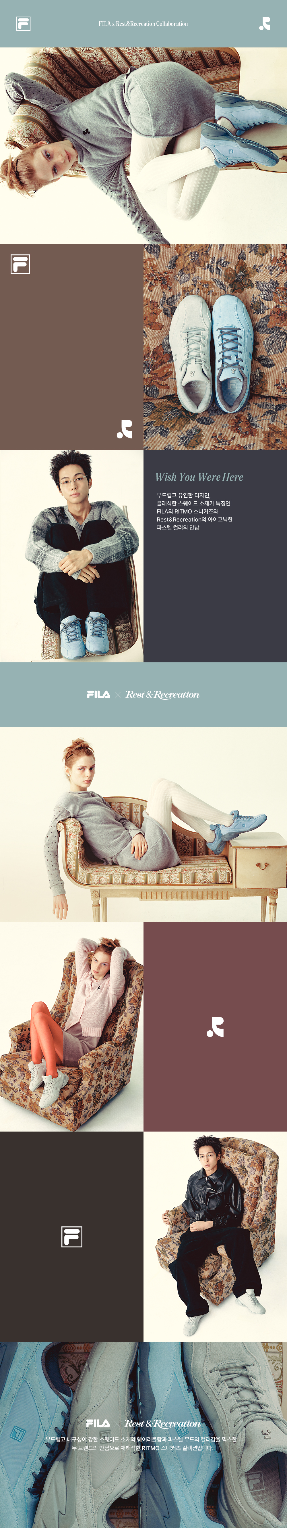 -2000 년대 FILA GLOBAL LINE인 FILA RITMO를 현대적으로 재해석한 제품입니다-측면에 F박스 로고와 Rest&Recreation 로고 디테일을 적용했습니다-텅 부분에 R&R의 심볼 로고 디테일을 적용했습니다-탑뷰에서 본 어퍼의 곡선형 스티치 라인이 부드럽고 유려한 실루엣을 부여합니다-측면의 길게 뻗은 직선 스티치라인이 슬림한 실루엣을 부여합니다- 적당한 두께감의 뒤쪽 미드솔이 안정감있는 착화감 제공합니다-스웨이드 소재를 사용하여 고급스러운 감성을 연출하며 착화시 유연한 핏을 제공합니다- Ortholite 솔을 사용하여 편안한 쿠션감을 제공합니다