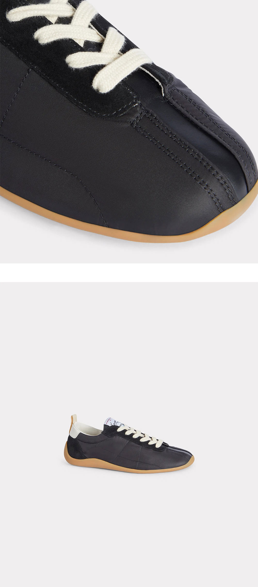 겐조 스트라이커 로우 탑 플랫 스니커즈 블랙 입니다. - 볼링 슈즈에서 영감을 받은 스티치 디테일 - 스웨이드 배색감이 돋보이는 어퍼 디자인 - 코튼 라이닝으로 편안한 착용감 - 대비되는 브라운 톤의 고무 아웃솔 - 힐탭에 KENZO & PARIS 디보싱 로고 - 텅 부분 KENZO 아카이브 시그니처 우븐 라벨 ✧ AI로 제작한 콘텐츠가 포함되었습니다.