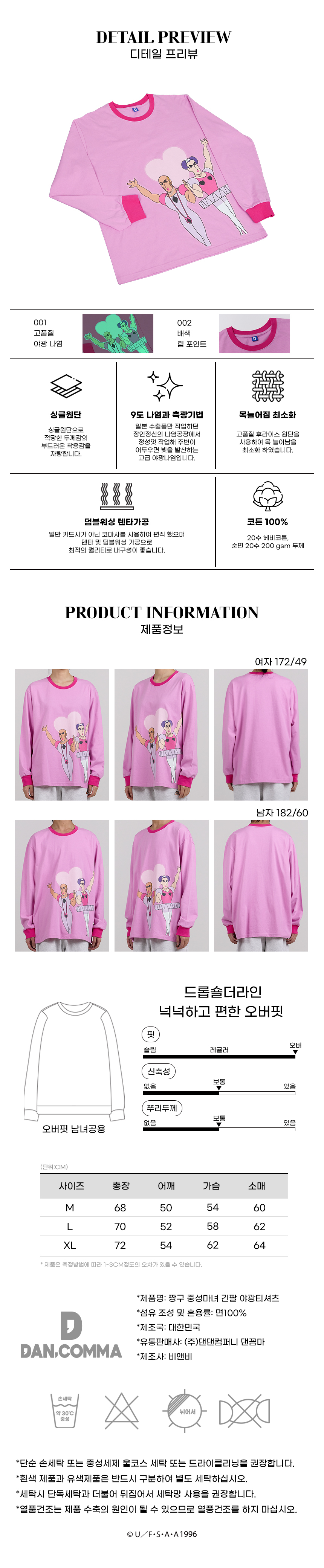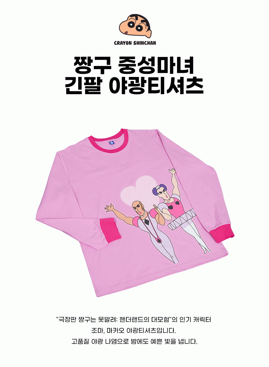 댄꼼마 x 짱구 중성마녀 긴팔 야광티셔츠 핑크