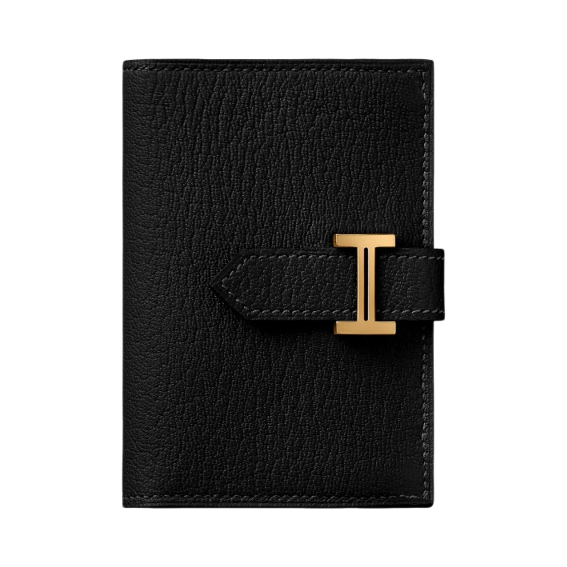 Hermes Bearn Card Holder Mysore Goatskin & Gold Noir
