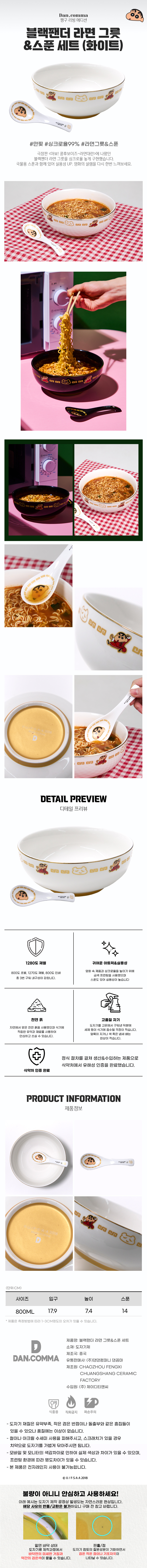 댄꼼마 x 짱구 블랙팬더 라면 그릇&스푼 세트 화이트