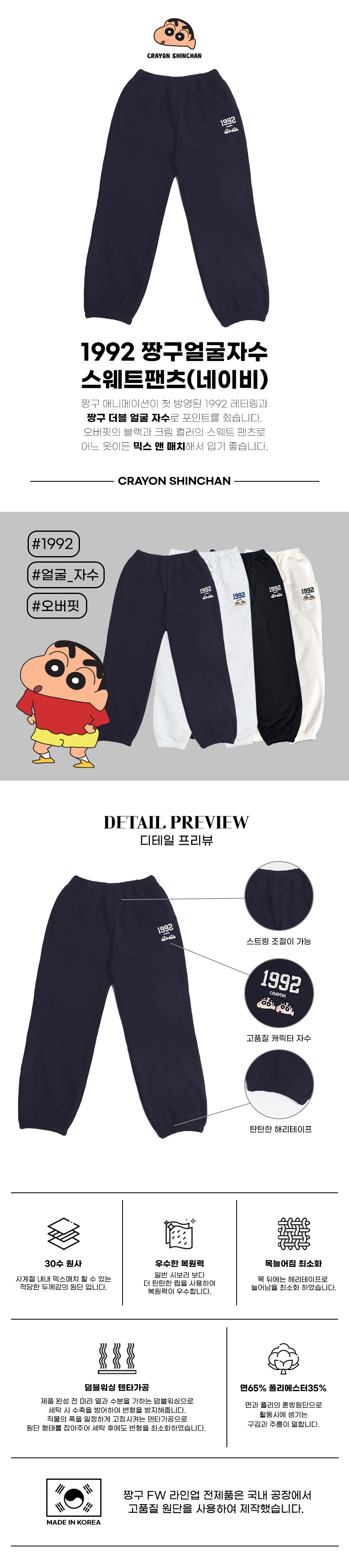 댄꼼마 x 짱구 1992 얼굴자수 스웨트팬츠 네이비