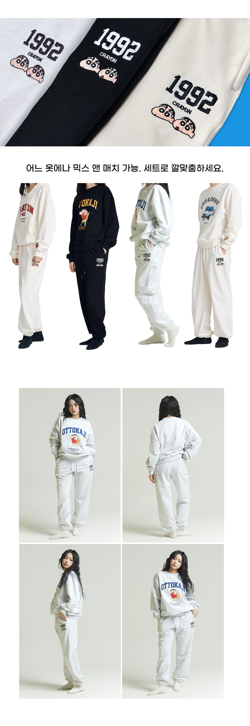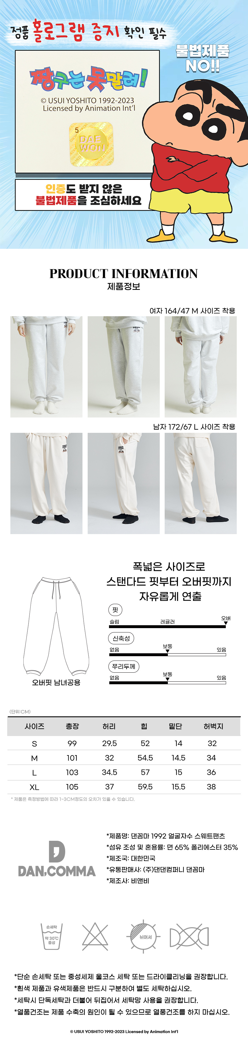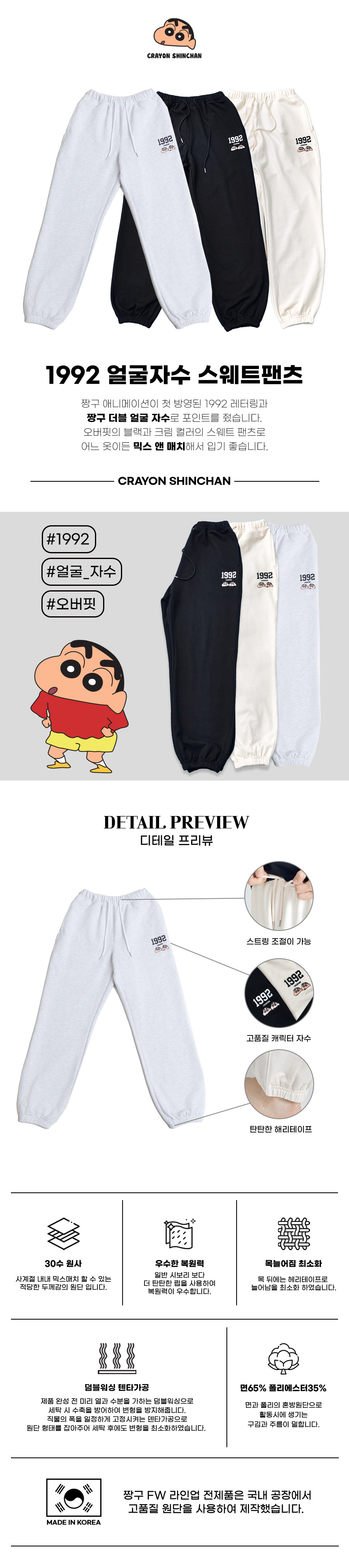 댄꼼마 x 짱구 1992 얼굴자수 스웨트팬츠 멜란지 그레이