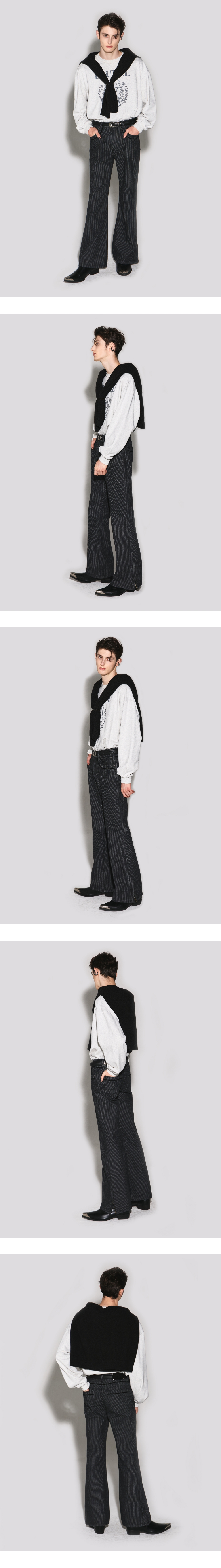 웨슬리휴스턴 웨스턴 테이프 디테일 부츠컷 데님 팬츠 블랙 스트라이프