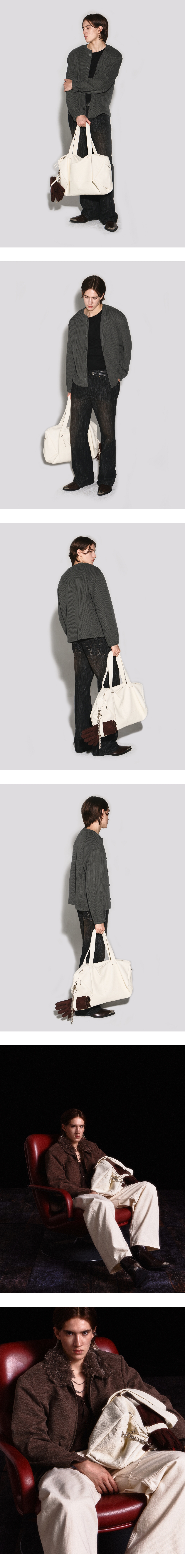 - 웨스턴 무드의 넉넉한 수납이 가능한 그레인레더 느낌의 보스턴백 - 옆면 웨스턴 모양의 덧댐 장식과 O링 - 장갑 등을 걸 수 있는 가죽 스트랩 키링 - 뒤판 지퍼포켓과 가죽 지퍼 핸들 장식 디테일 - 내부 지퍼 포켓과 웨슬리 휴스턴 로고 스웨이드 마감 - 반대쪽 내부 다양한 수납이 가능한 액션폭 포켓 2개 - DRY CLEAN ONLY