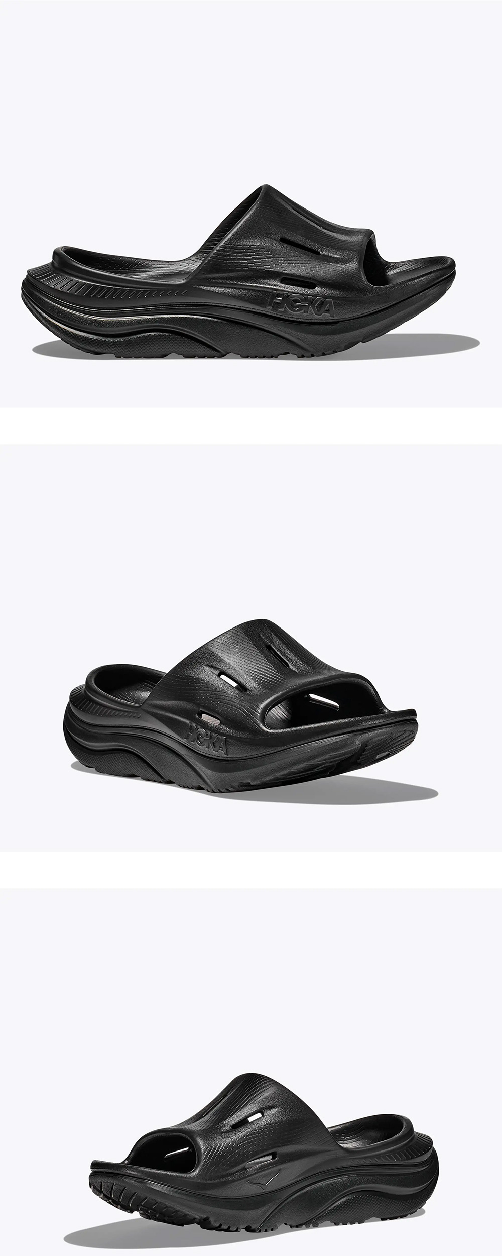 호카 오라 리커버리 슬라이드 3 블랙 블랙입니다. - 탁월한 통기성을 위한 4개의 공기 구멍 - 사탕수수 EVA 미드솔 - 이중 밀도 구조
