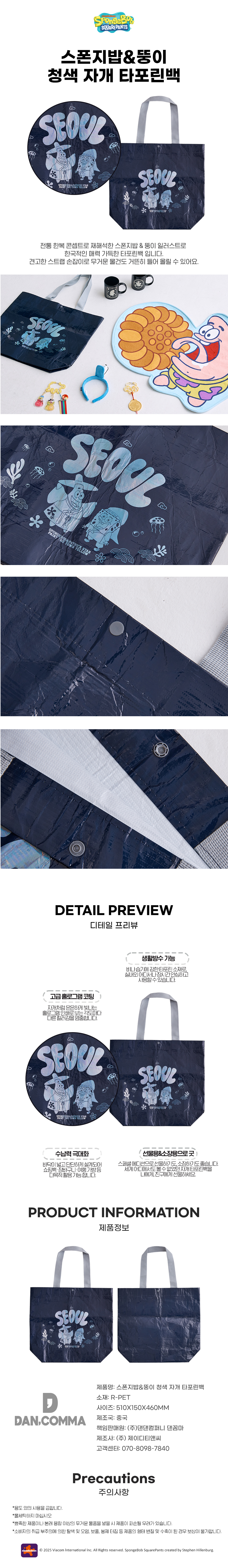 댄꼼마 x 스폰지밥 스폰지밥 & 뚱이 서울 에디션 청색 자개 타포린백
