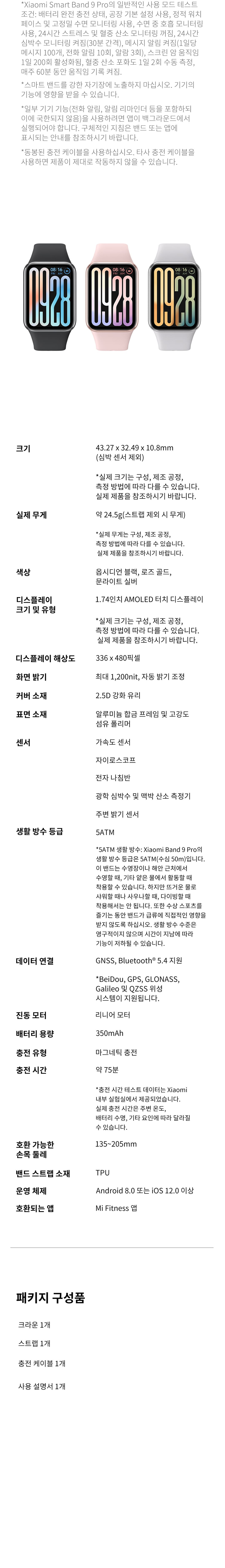 샤오미 미밴드 9 프로 스마트워치 웨어러블 만보기 러닝 스포츠 운동 시계