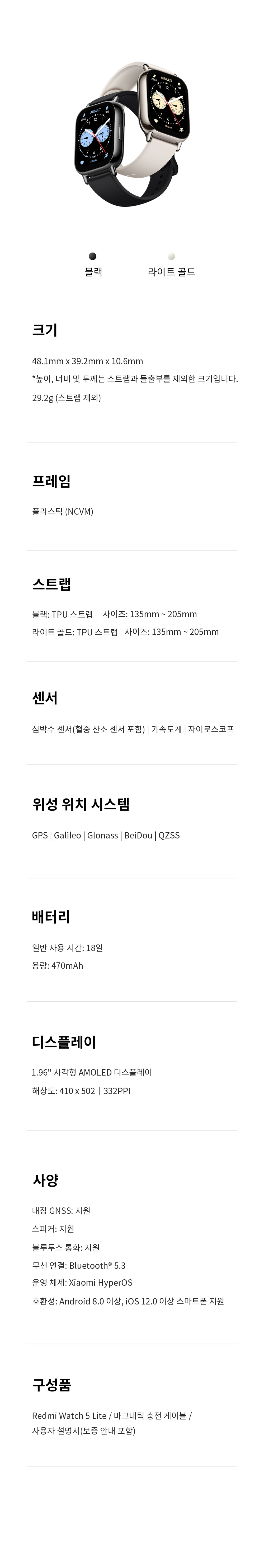 샤오미 레드미 워치 5 라이트 LITE 러닝 만보기 운동 스포츠 시계