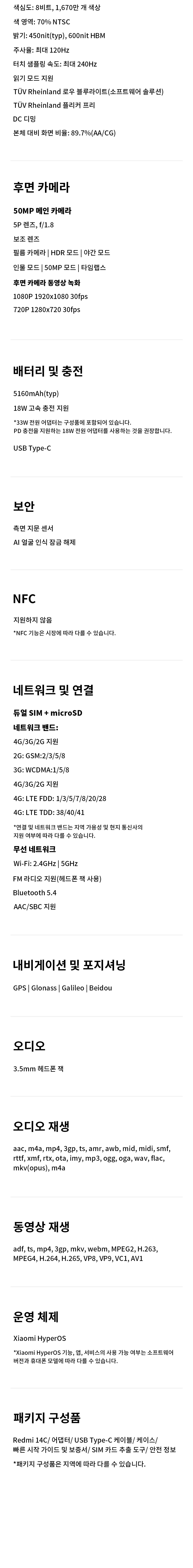 샤오미 레드미 14C 스마트폰 학생 휴대폰 자급제 효도폰 키즈폰 128GB