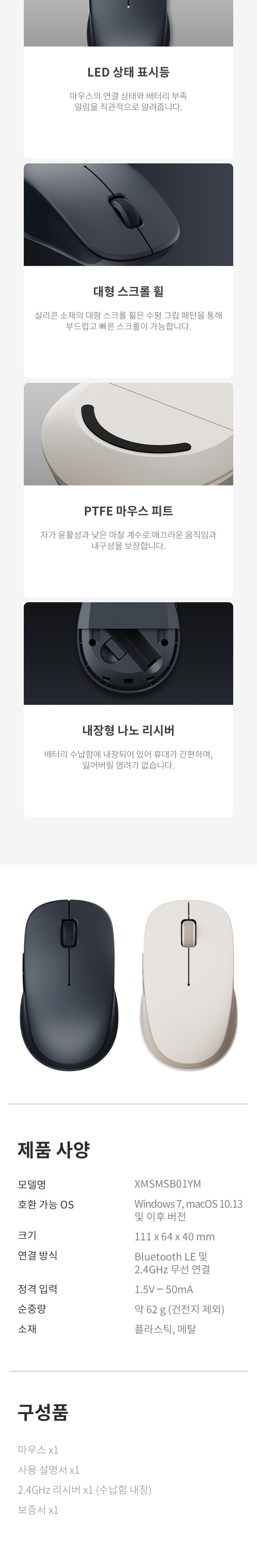 샤오미 듀얼모드 무선 마우스 2 블루투스 무소음 사무용 노트북 인체공학