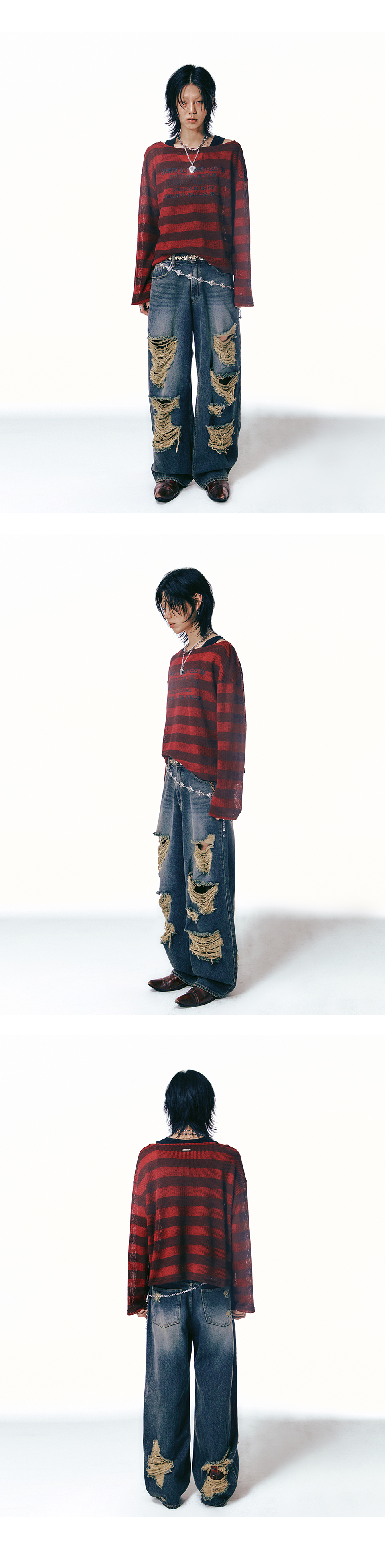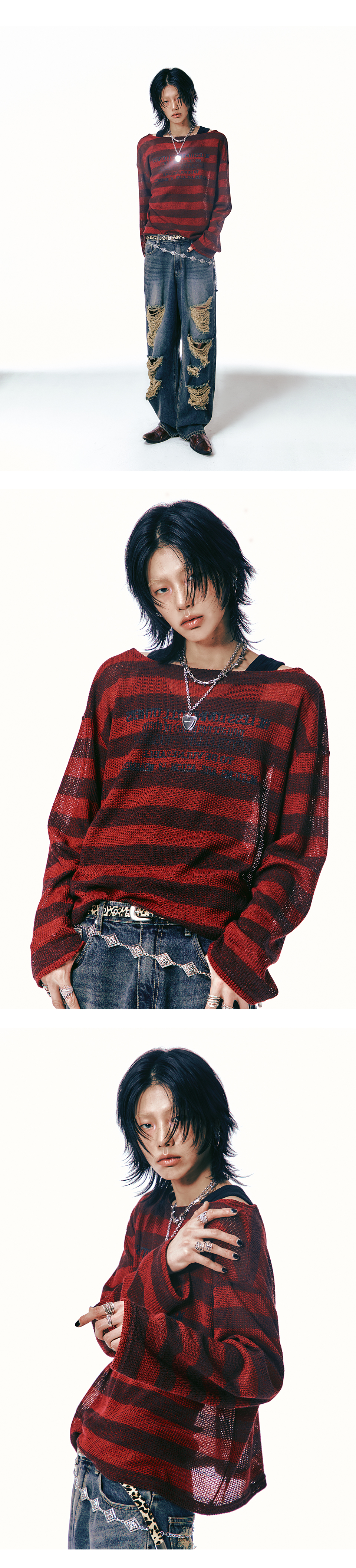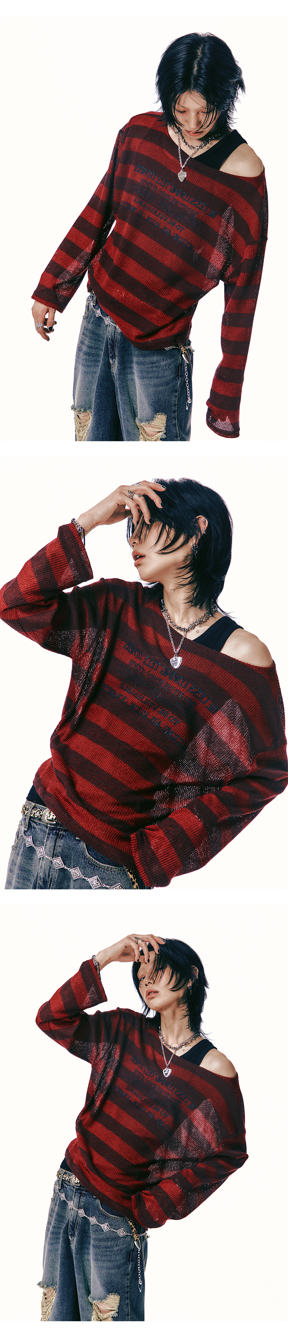 LAN ARCHIVE 0058 Lettering Stripe Knit Red