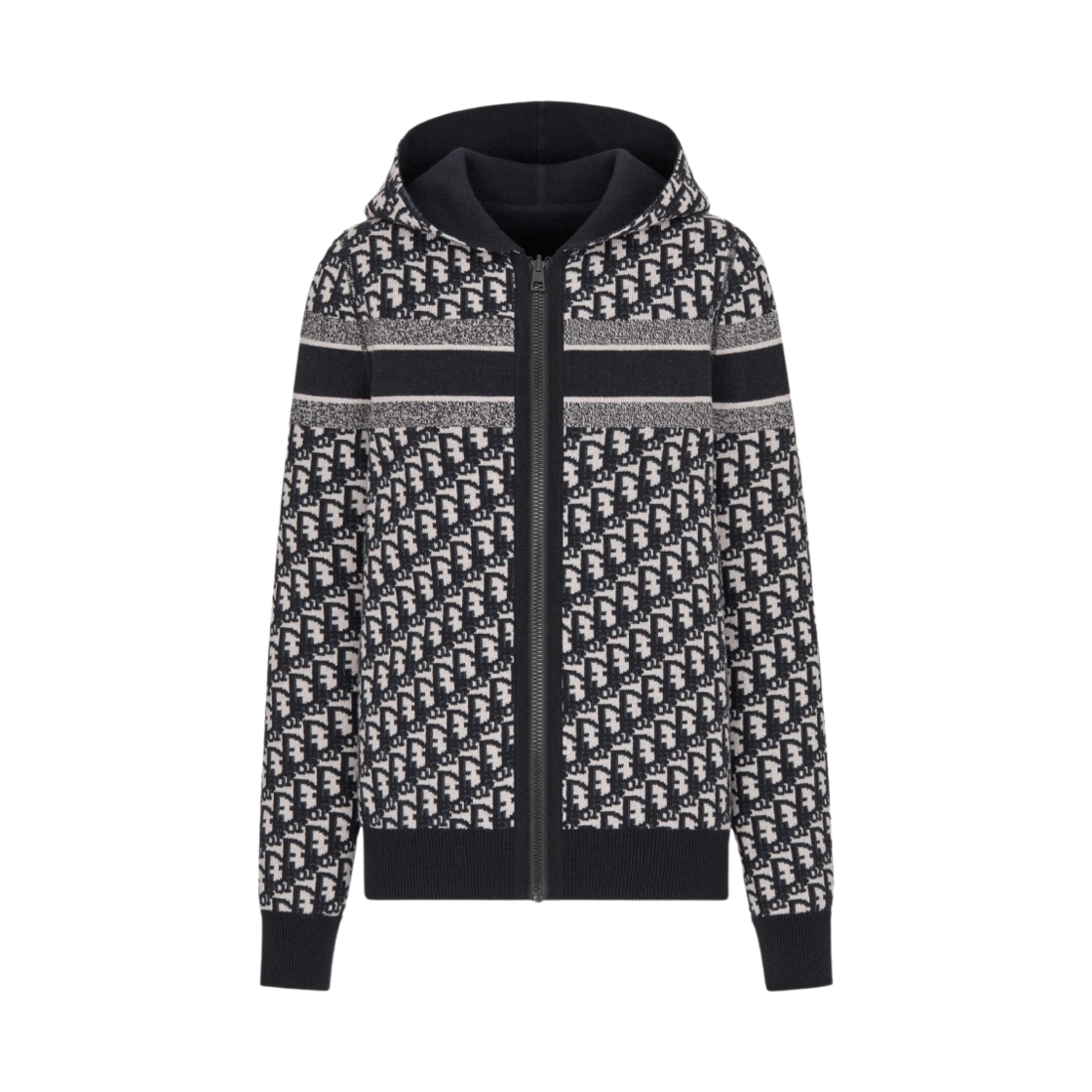 (W) 디올 테크니컬 캐시미어 리버시블 후드 지퍼 가디건 블루 디올 오블리크