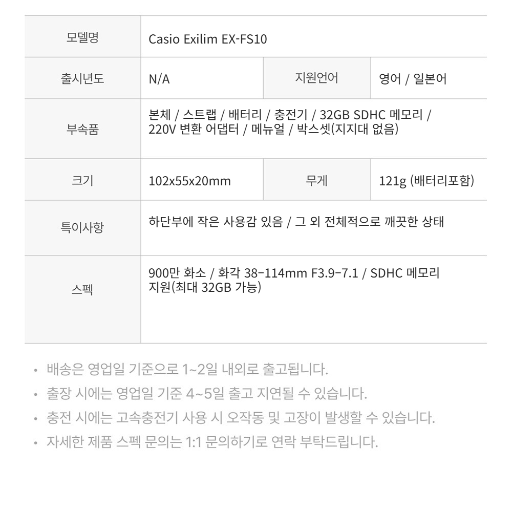 카시오 엑슬림 EX-FS10 화이트
