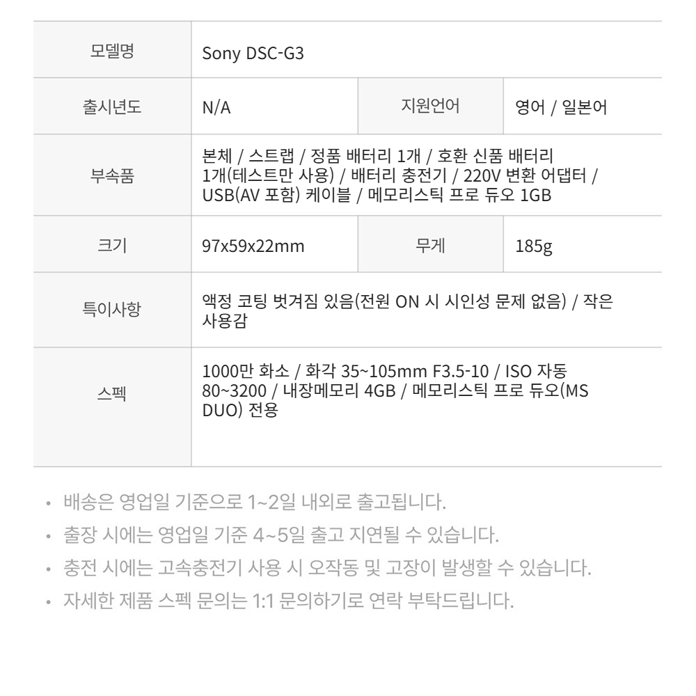 소니 DSC-G3 블랙