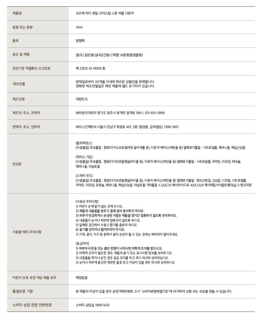 오브제바이쿤달 퍼퓸 크리스탈 스톤 디퓨저 기프트 세트