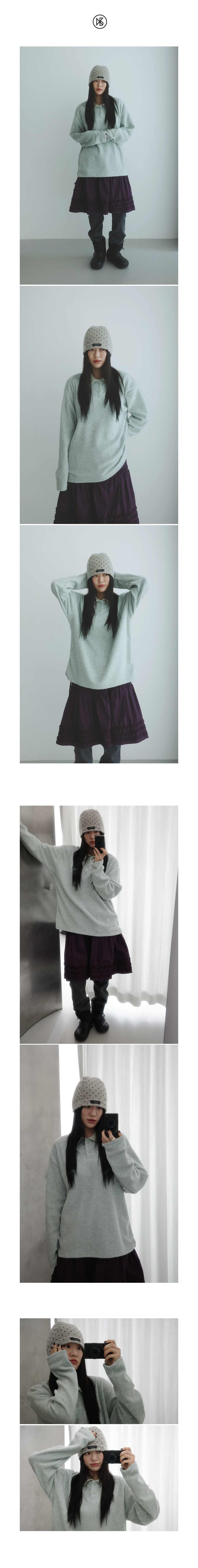 쿠키시 미니 도트 폴라플리스 비니 그레이