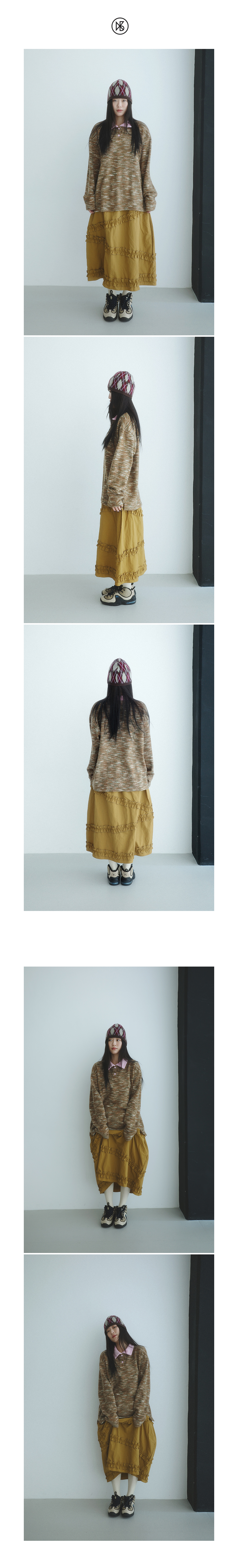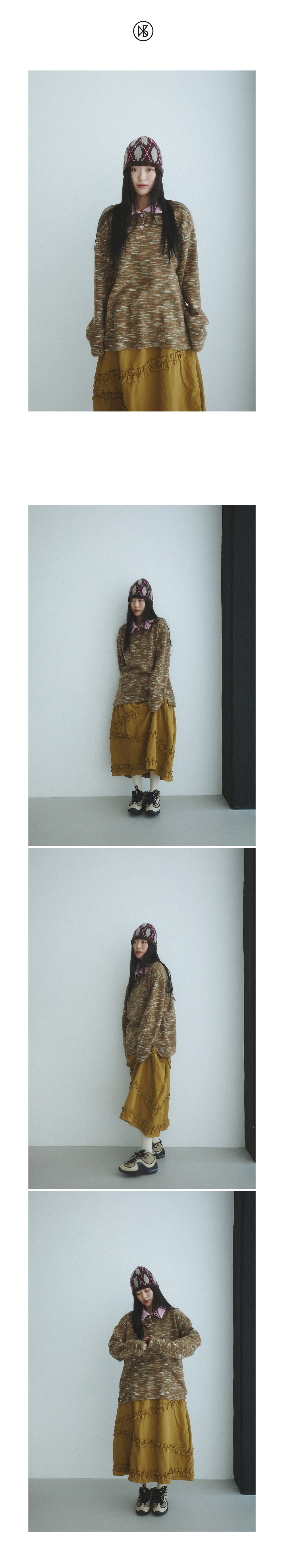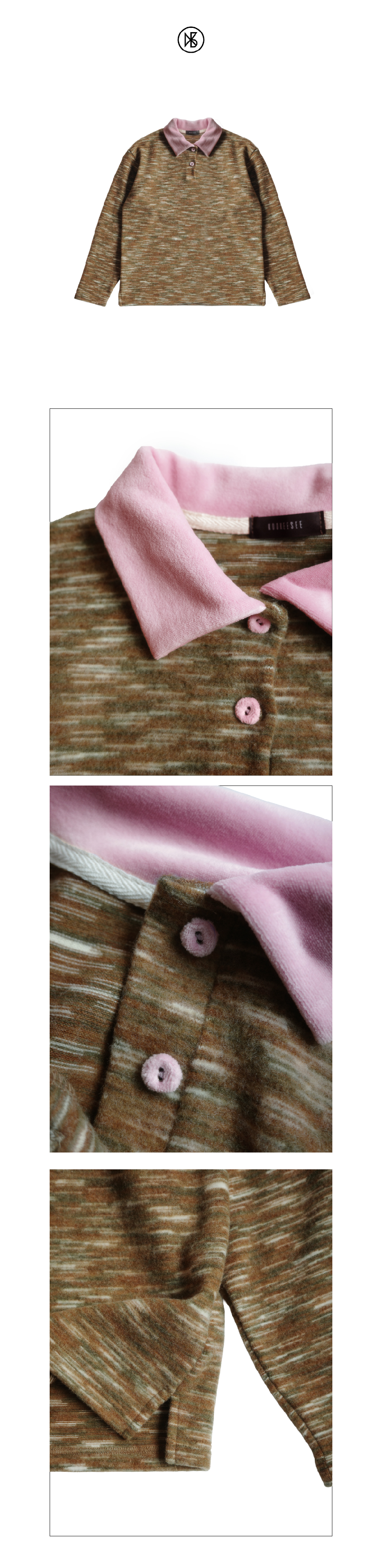 Kookeesee Marble Stripe Collar Tee brown