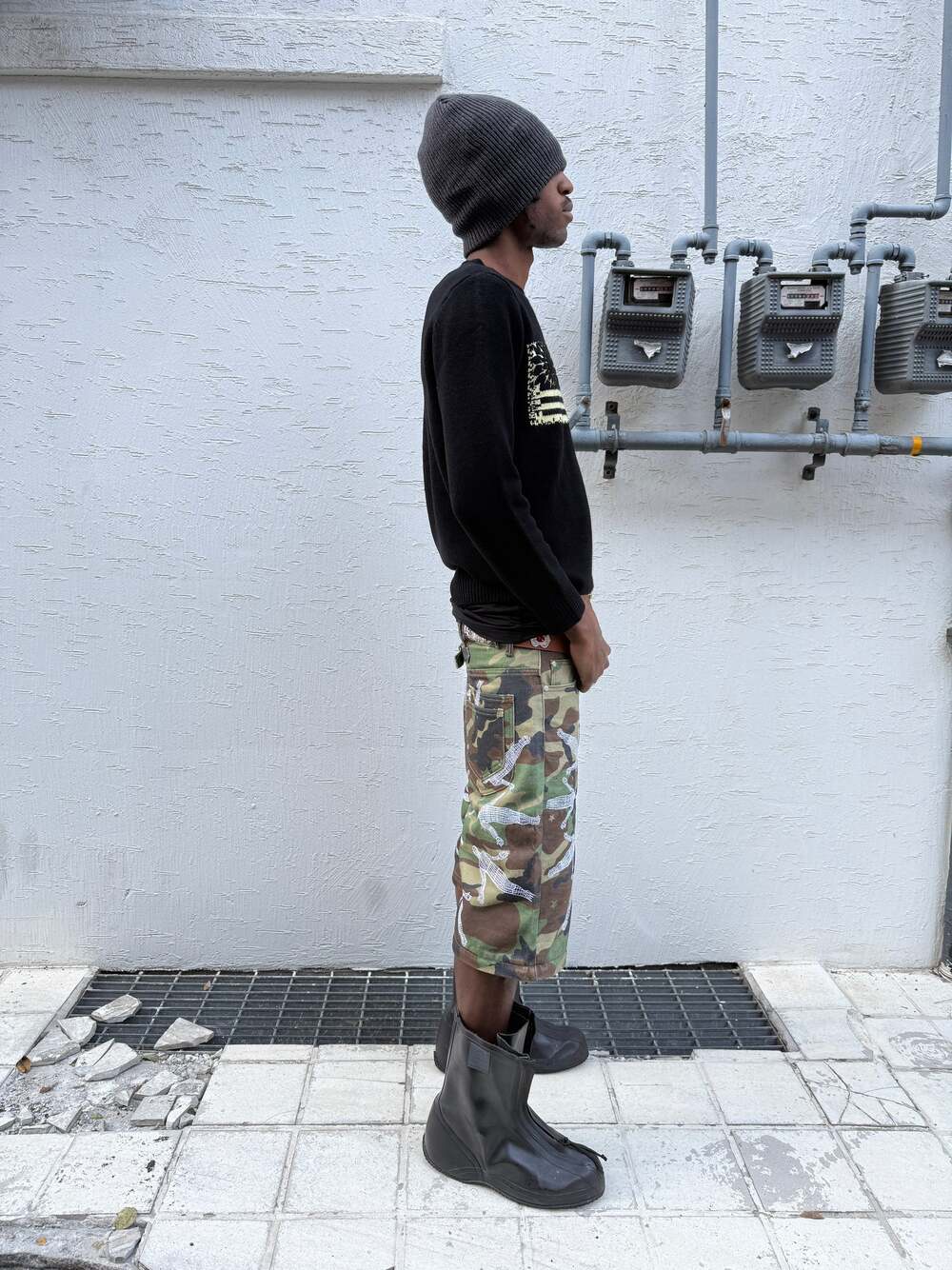언본소사이어티 언본 스테이트 플래그 울 니트 스웨터 블랙