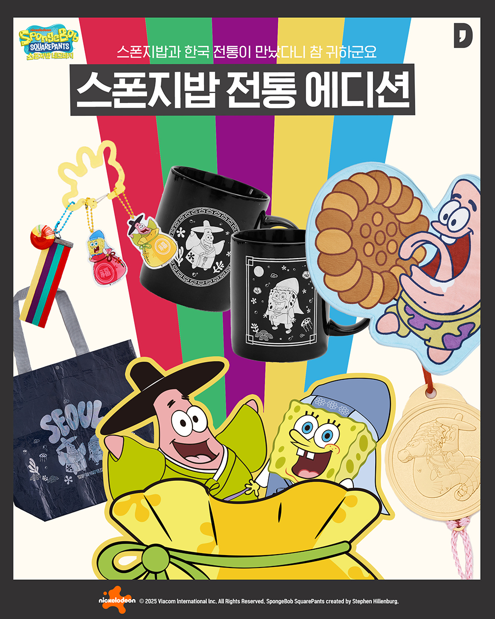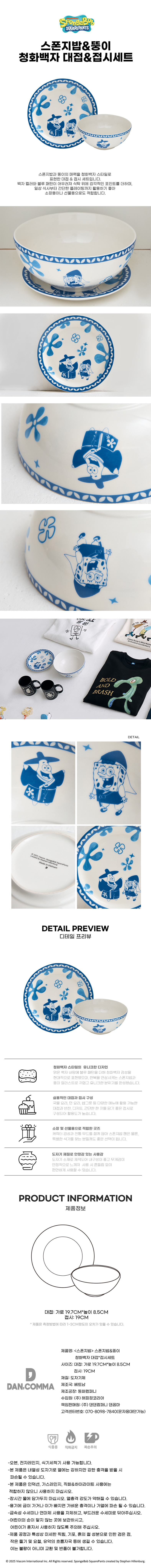 댄꼼마 x 스폰지밥 스폰지밥 & 뚱이 청화백자 대접 접시세트