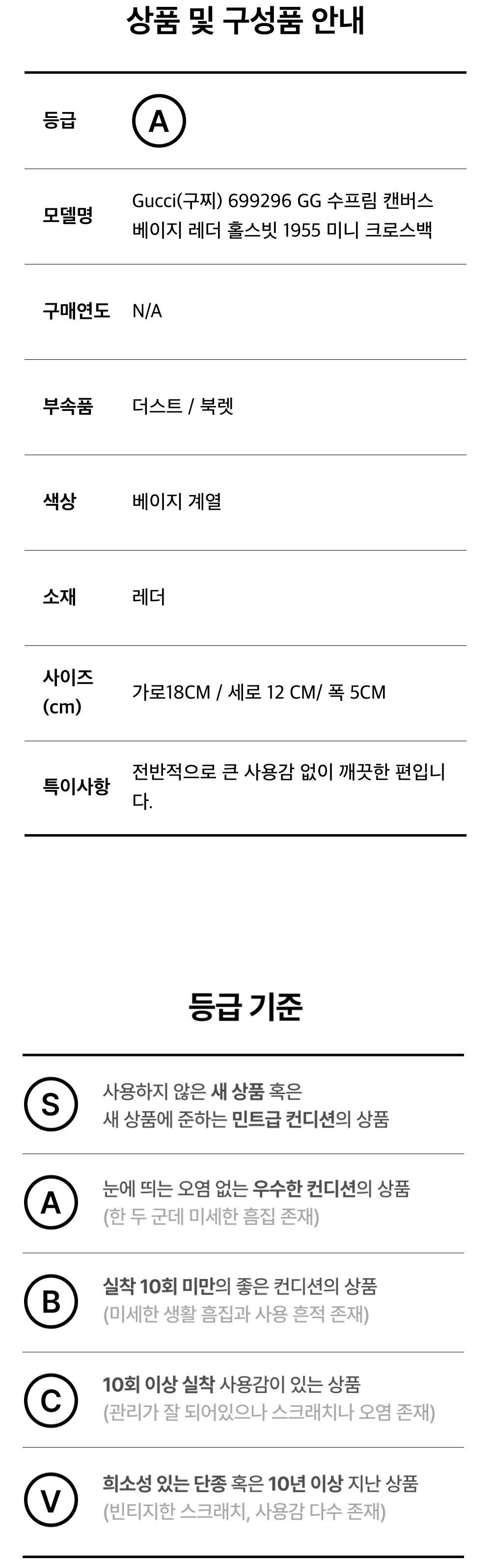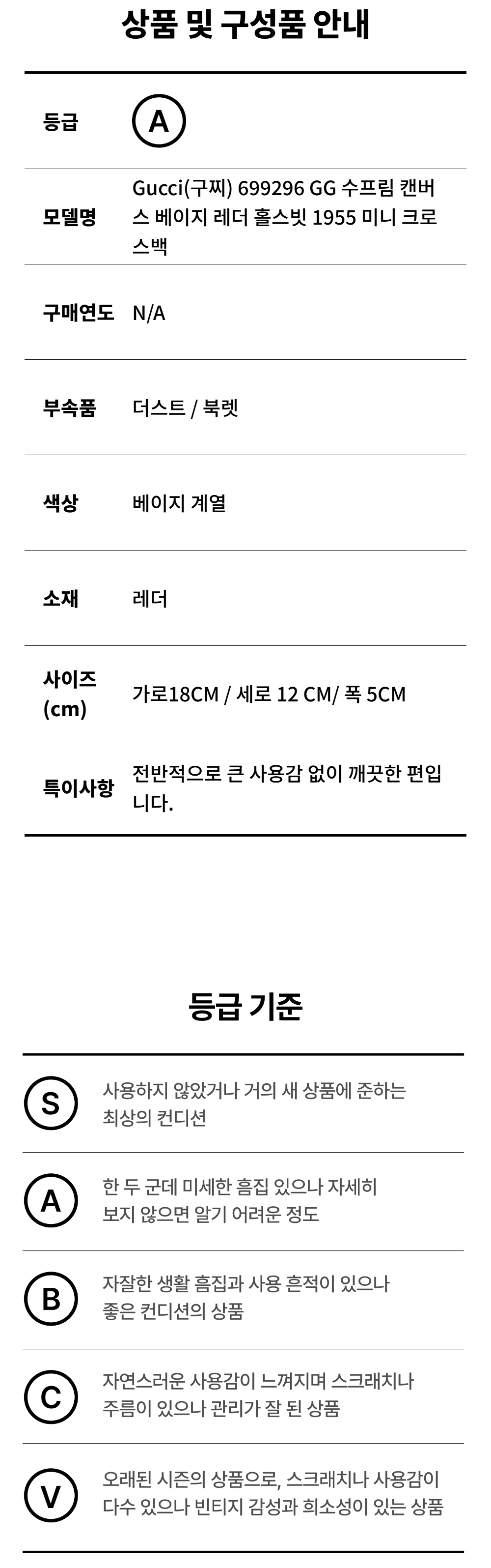 구찌 699296 GG 수프림 캔버스 베이지 레더 홀스빗 1955 미니 크로스백