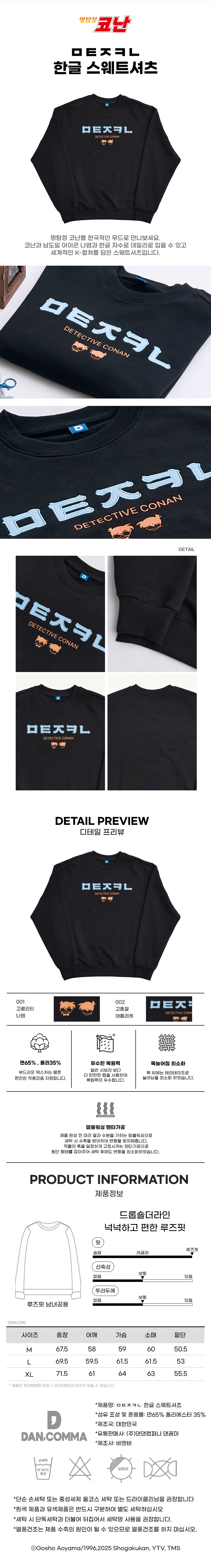 댄꼼마 x 명탐정 코난 ㅁㅌㅈㅋㄴ 한글 스웨트셔츠 블랙