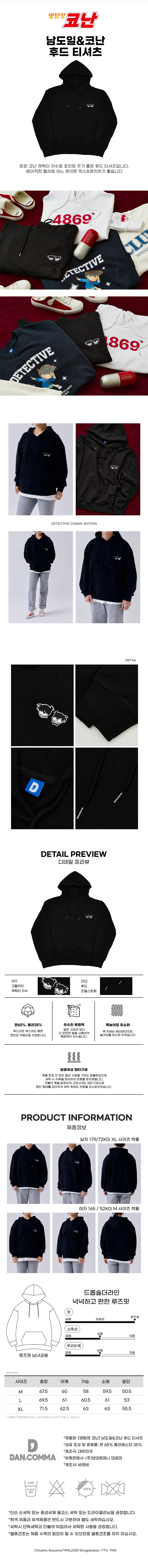 댄꼼마 x 명탐정 코난 남도일&코난 후드 티셔츠 블랙
