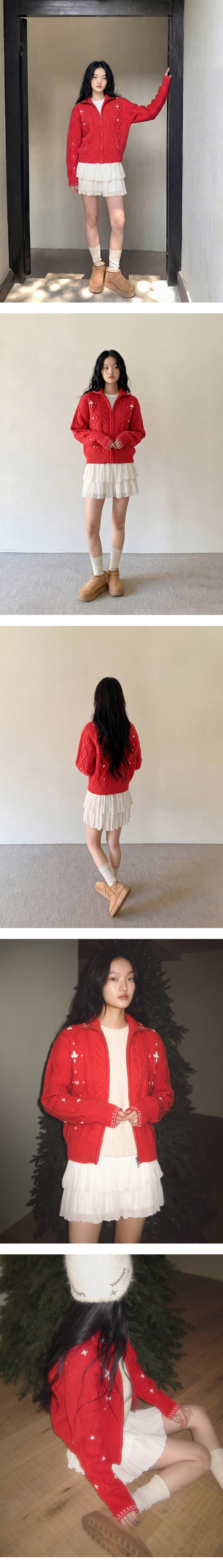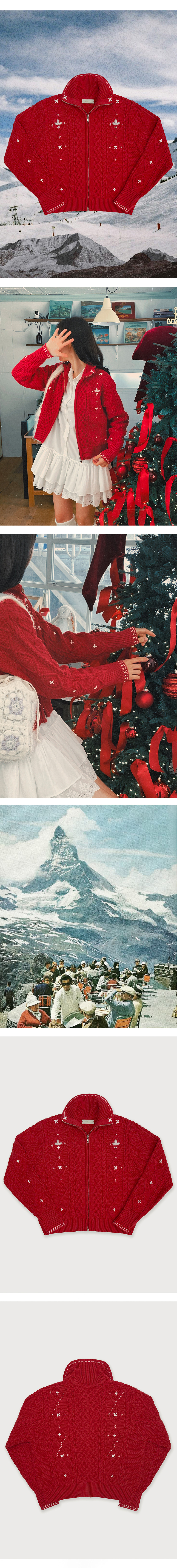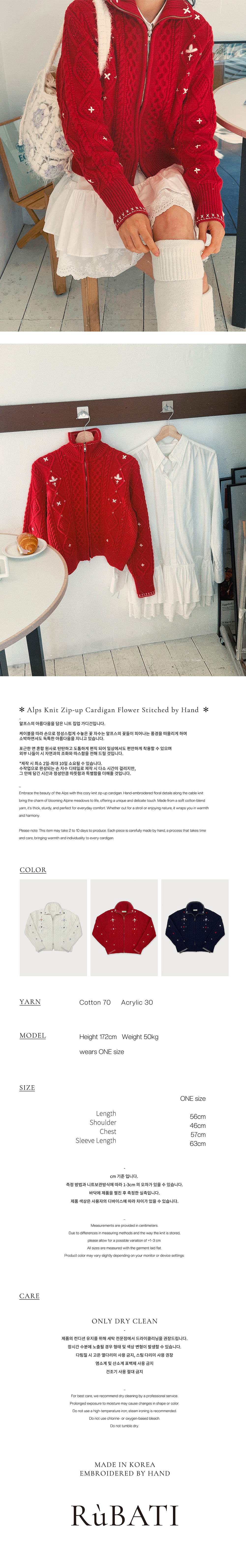 루바티 알프스 꽃자수 핸드스티치 니트 집업 가디건 레드