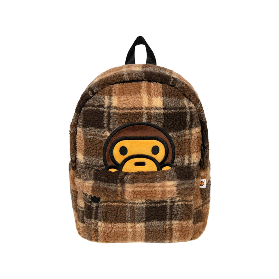 BAPE Baby Milo Faux Fur Check Medium Backpack Beige