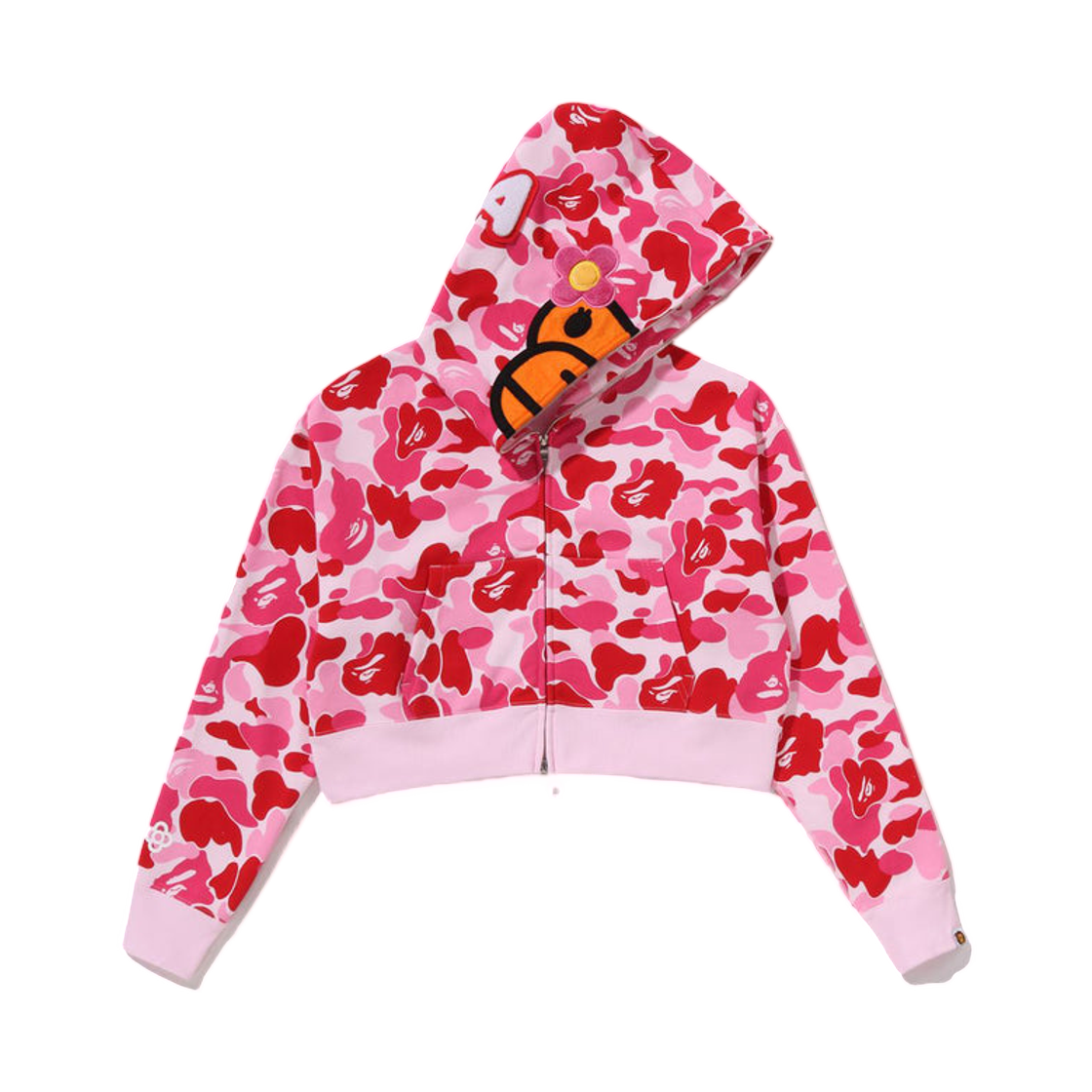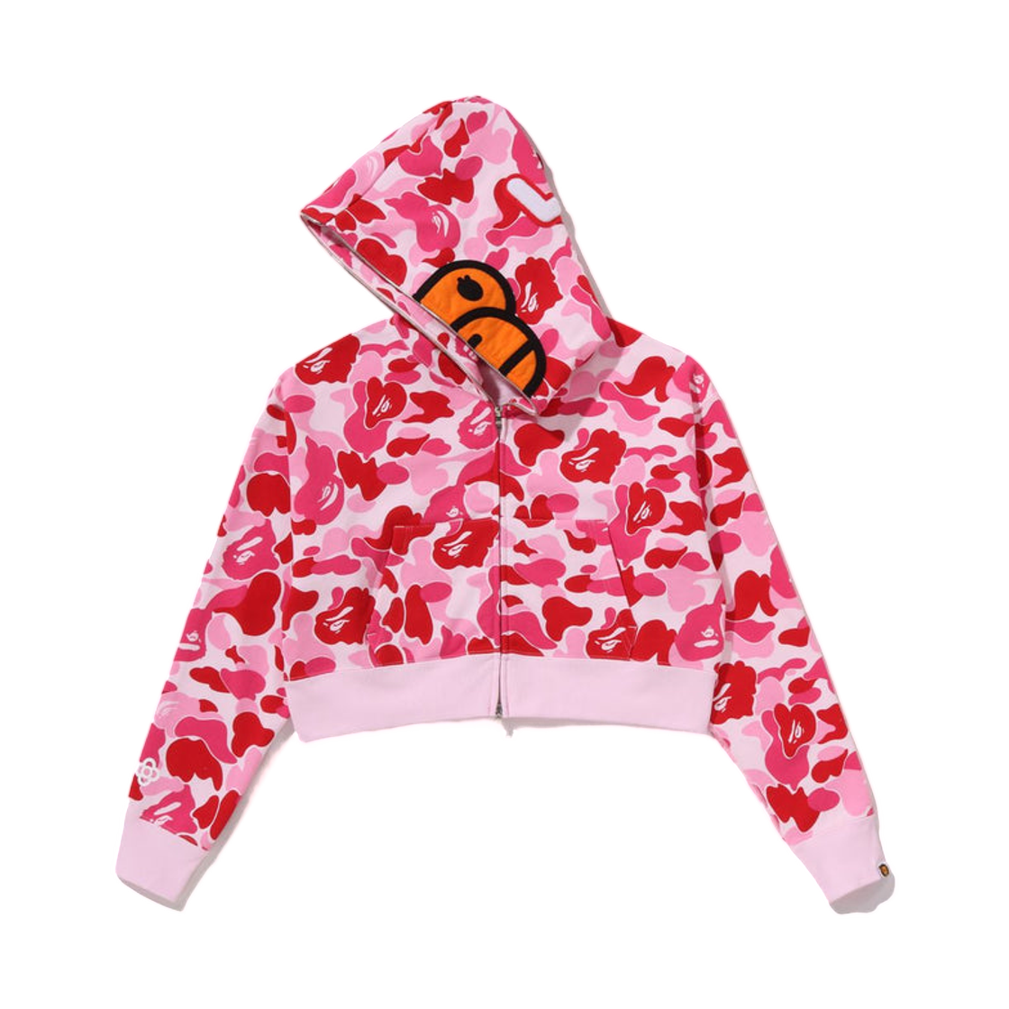 (W) 베이프 ABC 카모 베이비 리사 크롭 풀 집 후드 핑크
