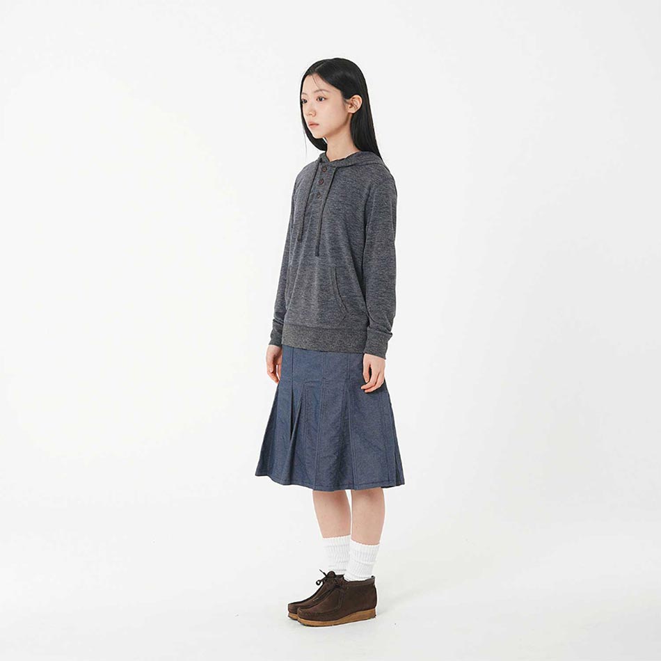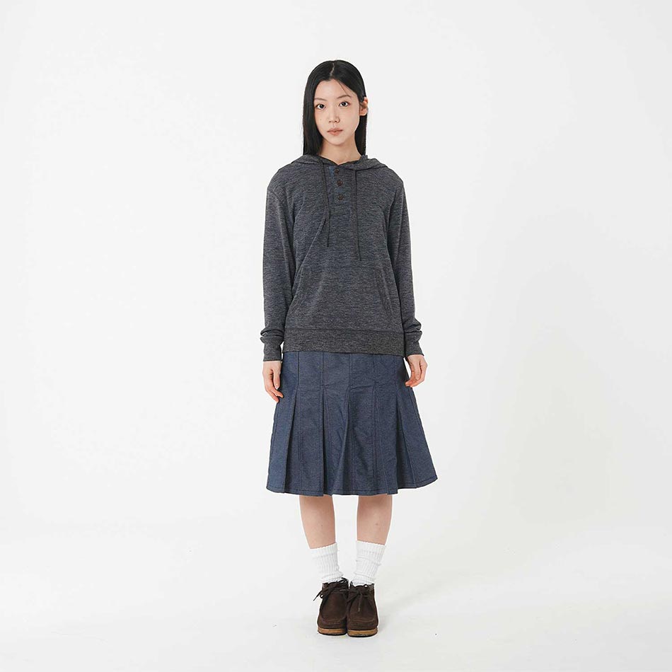 사파리스팟 투 버튼 플리츠 데님 스커트 인디고