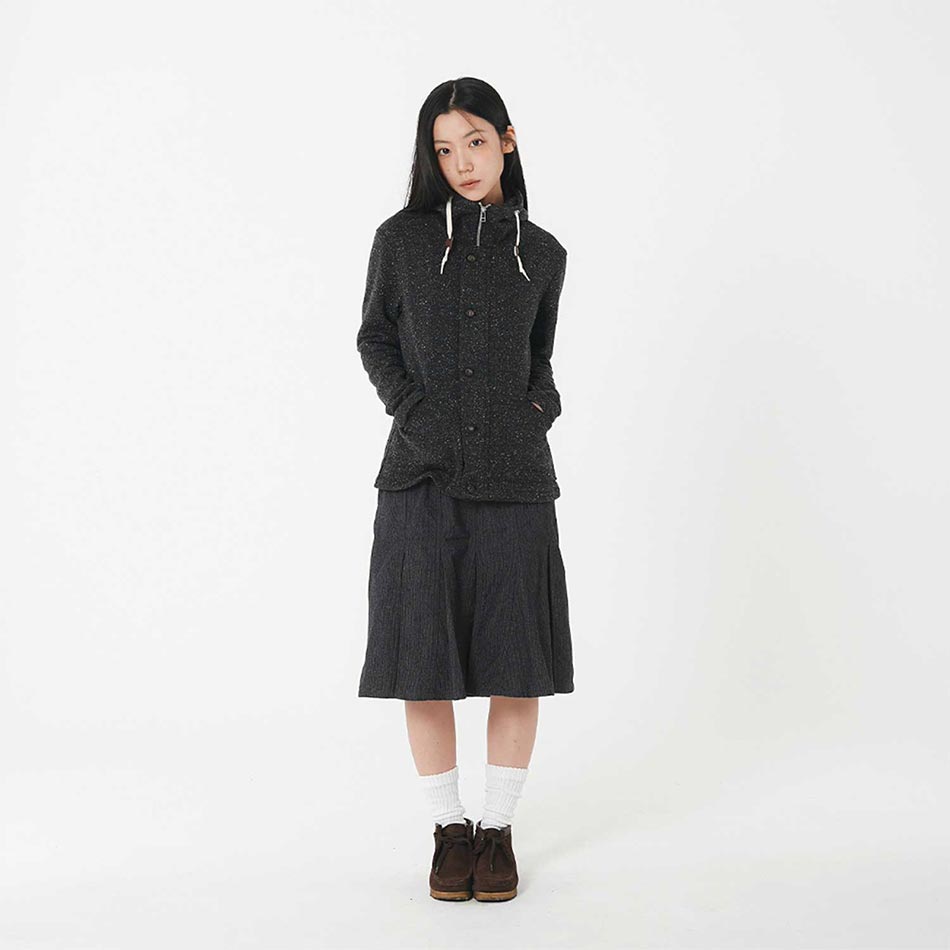 사파리스팟 투 버튼 플리츠 울 스커트 블랙