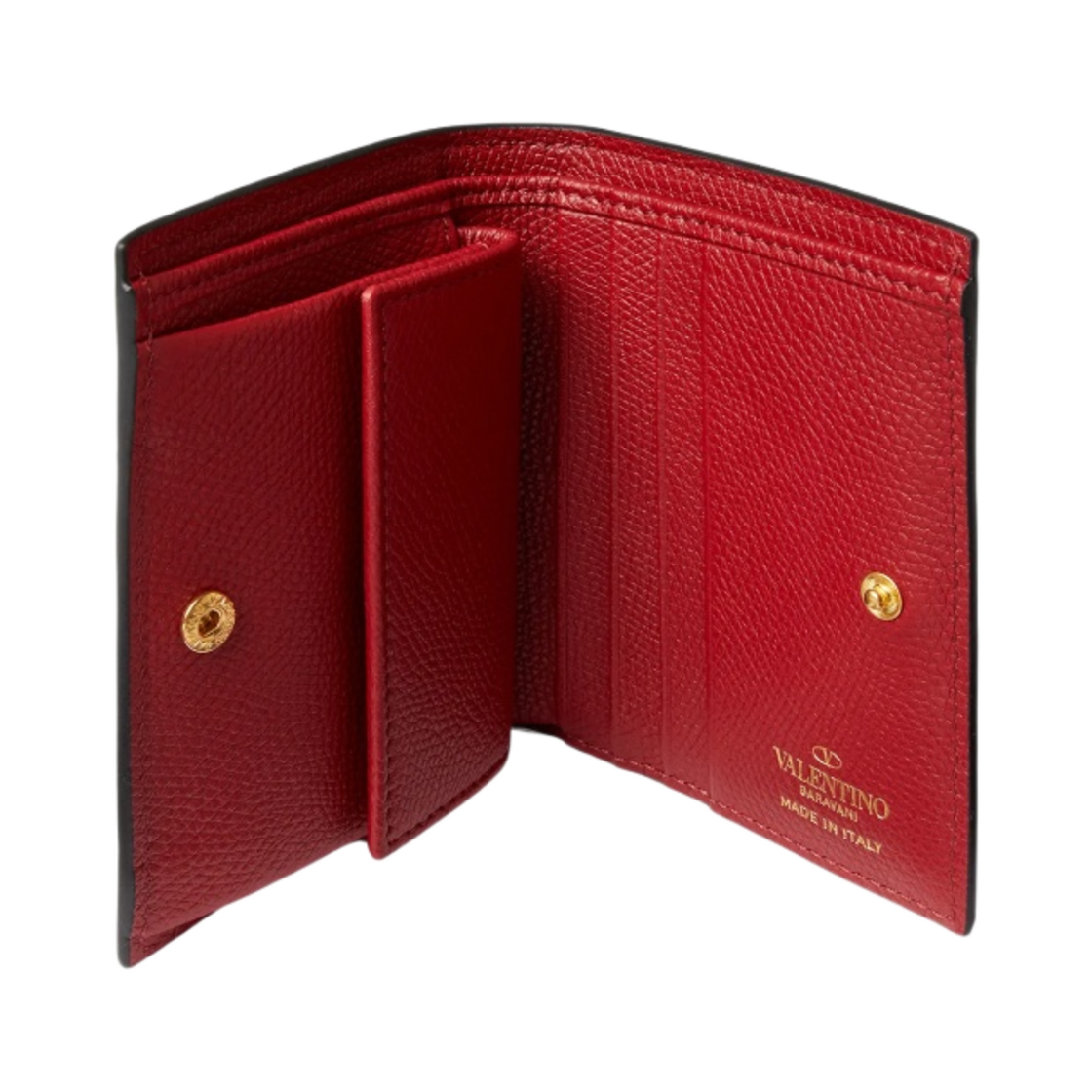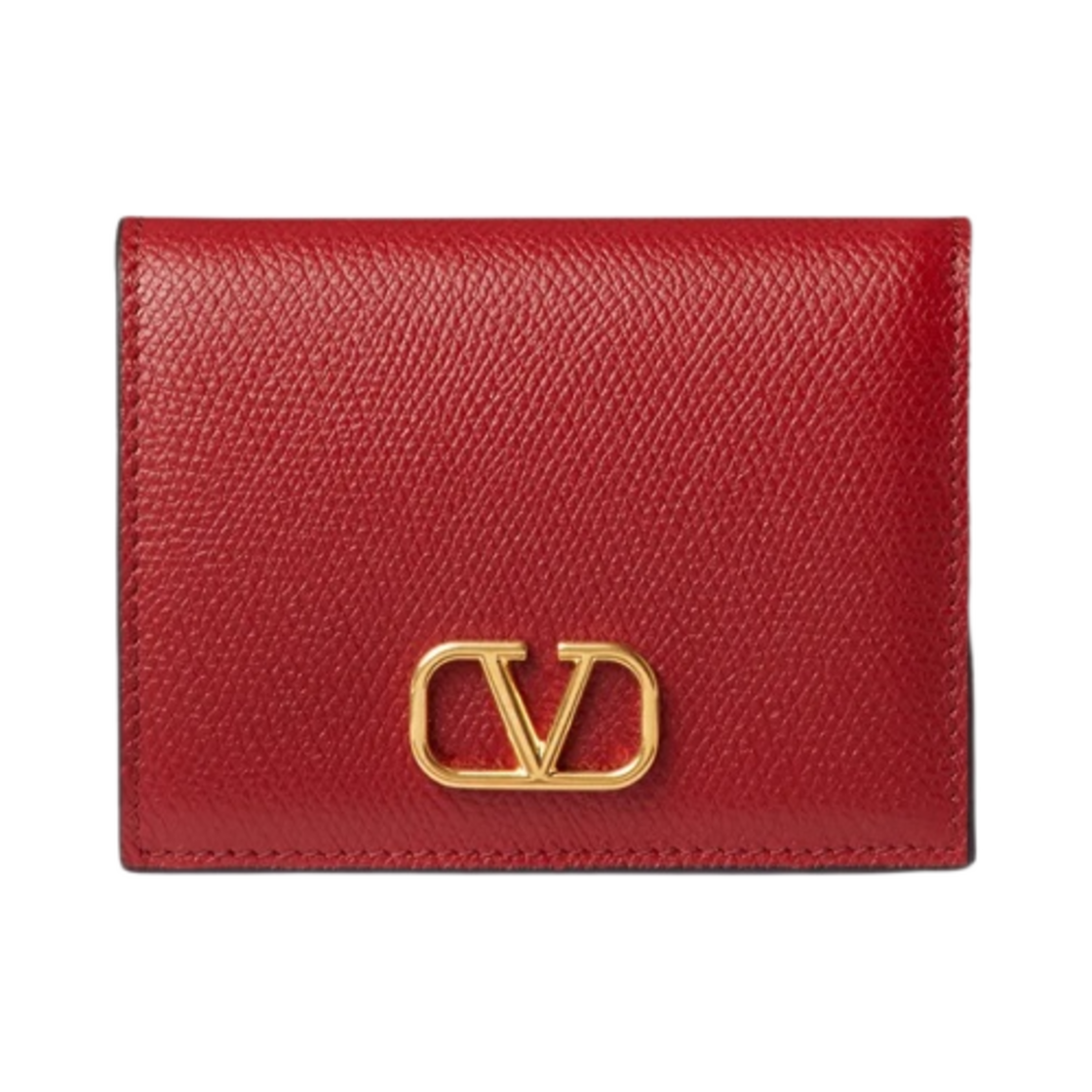 Valentino Compact Vlogo Signature Grainy Calfskin Wallet Rosso Valentino