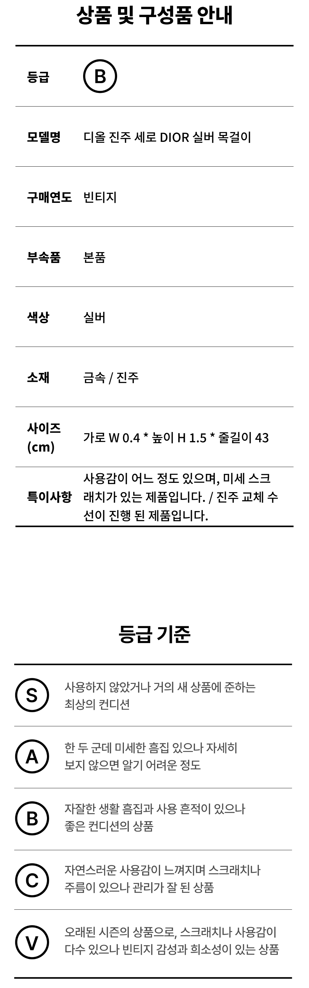디올 진주 세로 에르메스 실버 목걸이 A-B42845